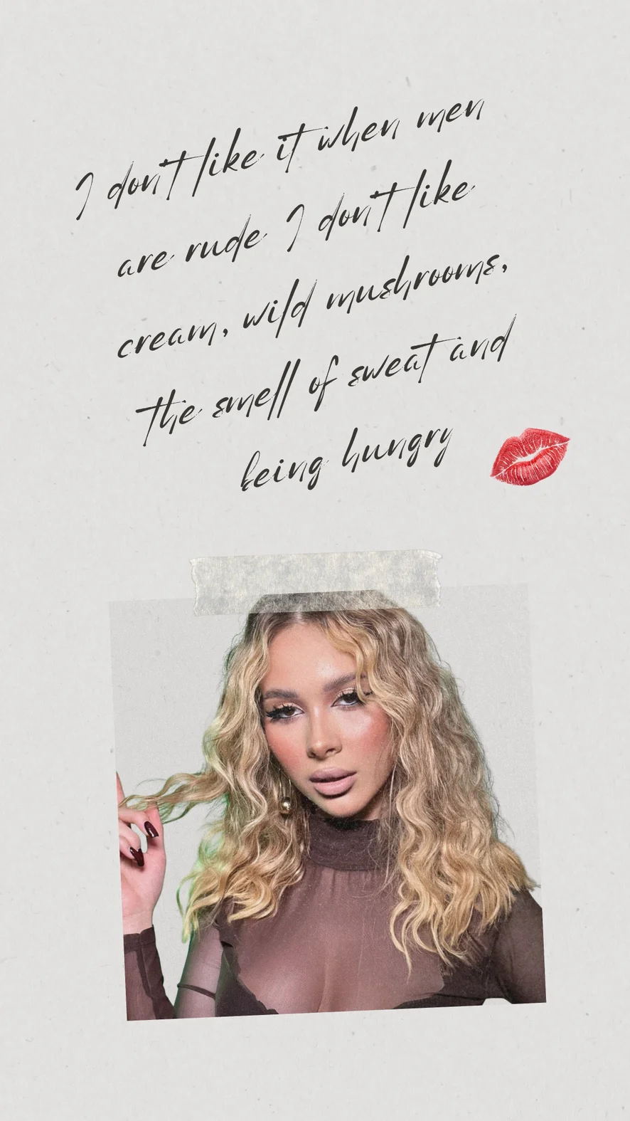 Esibizionismo, Tacchi, Yoga, Ripresa della gonna da sotto, Ahegao, Zoccolo di cammello, Cosplay, Valutazione del cazzo, Feticismo dei piedi, Twerk, Donna sopra, Spogliarello, Sculacciate, Ballo erotico, Dildo o Vibratore, Giocattoli erotici, Umiliazione, Bustino, Orgasmo, Pecorina, Topless, Spettacolo con olio, Linguaggio esplicito, Sega, Masturbazione, Ditalino, Giochi di ruolo, Mistress
